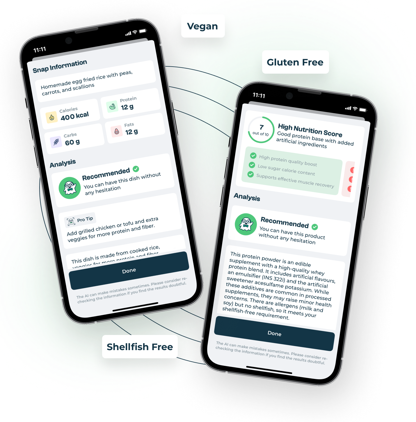Get instant calories & macros, a nutrition score, and a quick verdict with one photo. Works on labels, menus, barcodes & meal photos.